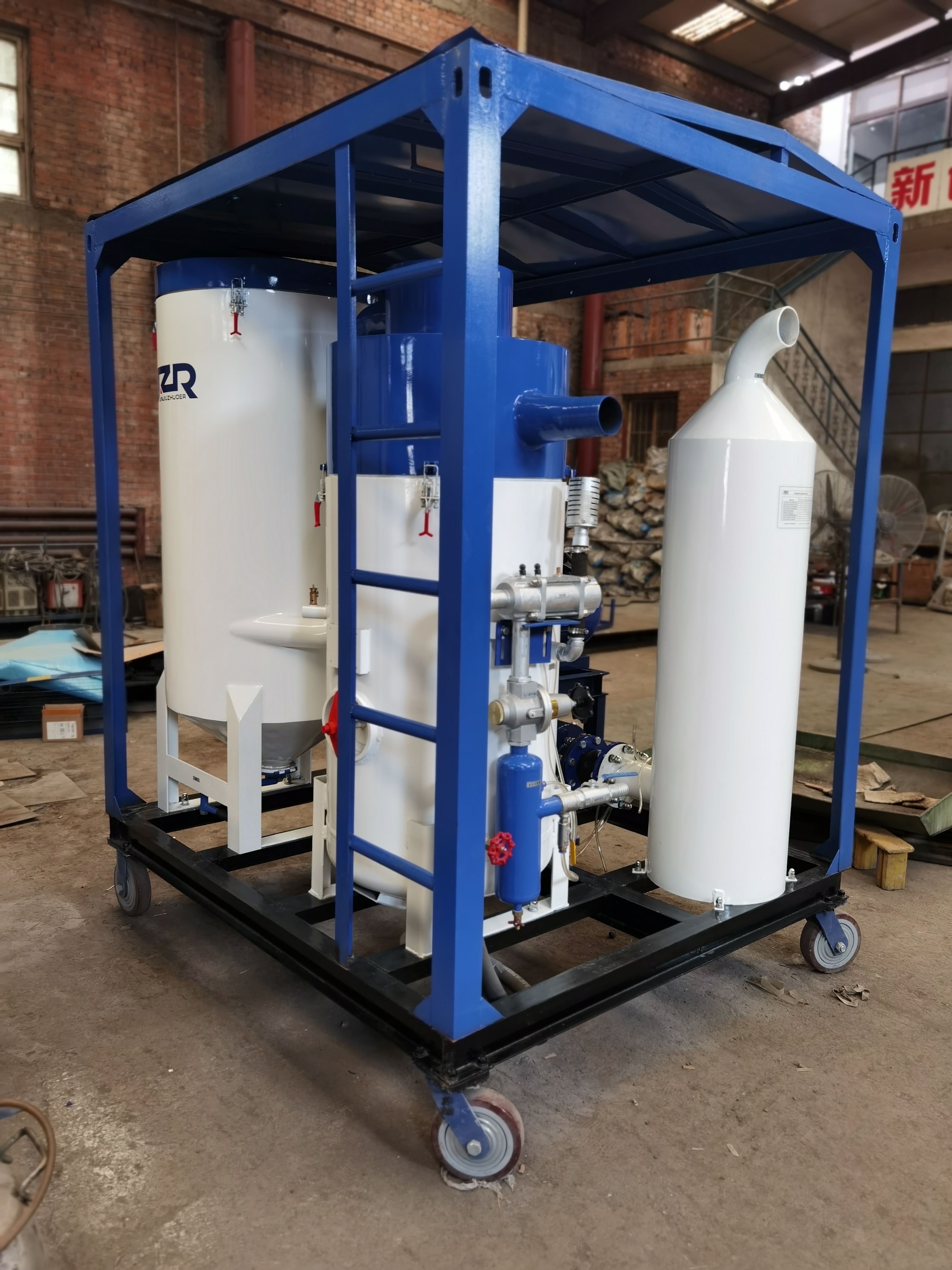 JZR-LZ600型環(huán)保噴砂機(jī)根據(jù)特種防腐遠(yuǎn)程或高空噴砂施工作業(yè)要求專(zhuān)業(yè)研制的大型高空表面噴砂處理設(shè)備。JZR-LZ600型無(wú)塵噴砂機(jī)憑借40米遠(yuǎn)程作業(yè)的強(qiáng)大功能,廣泛適用于船舶修造時(shí)船塢內(nèi)倉(cāng)免清理噴砂除銹、大型高架橋梁 、煙囪、汽柜、高空防腐、水利工程閘門(mén)、礦山、石油、化工、冶金、港口機(jī)械等領(lǐng)域,是大型工件高空遠(yuǎn)程無(wú)塵噴砂和特種噴砂理想的設(shè)備之一。